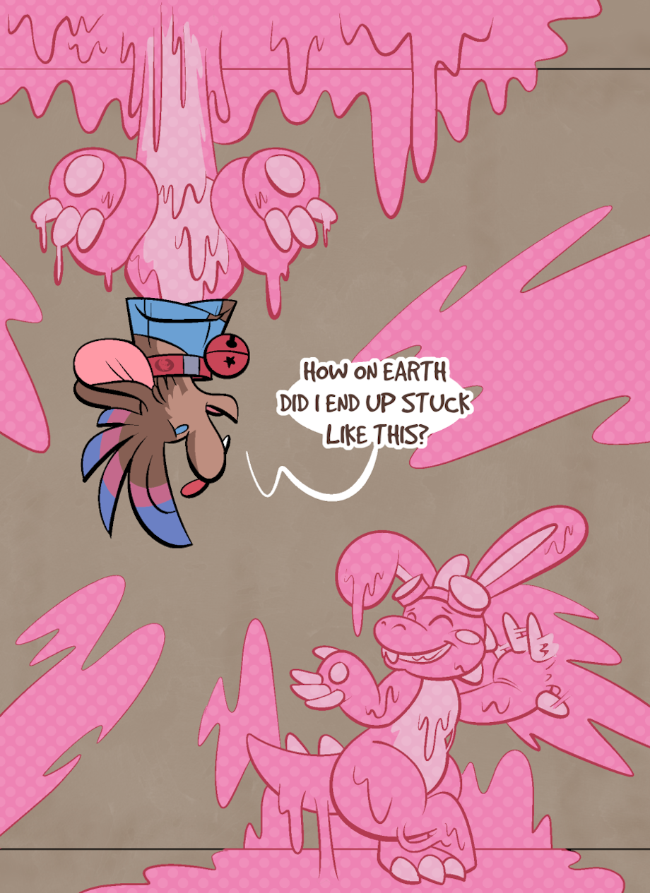Seems we've gotten into a sticky situation. It's not my first time dealing with unexpected and sudden transformations, but this is a bit more gummy than I'm used to.