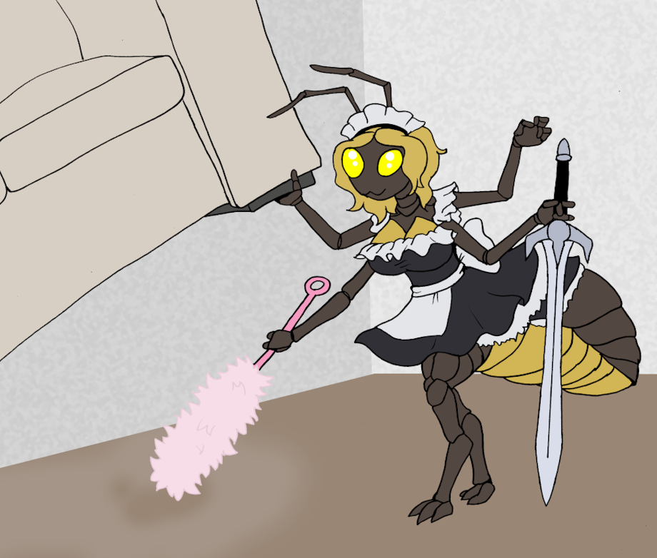 Commission for a player in one of my campaigns about his character, a formian war cleric/sorceress, infiltrating a rich nobleman mansion.