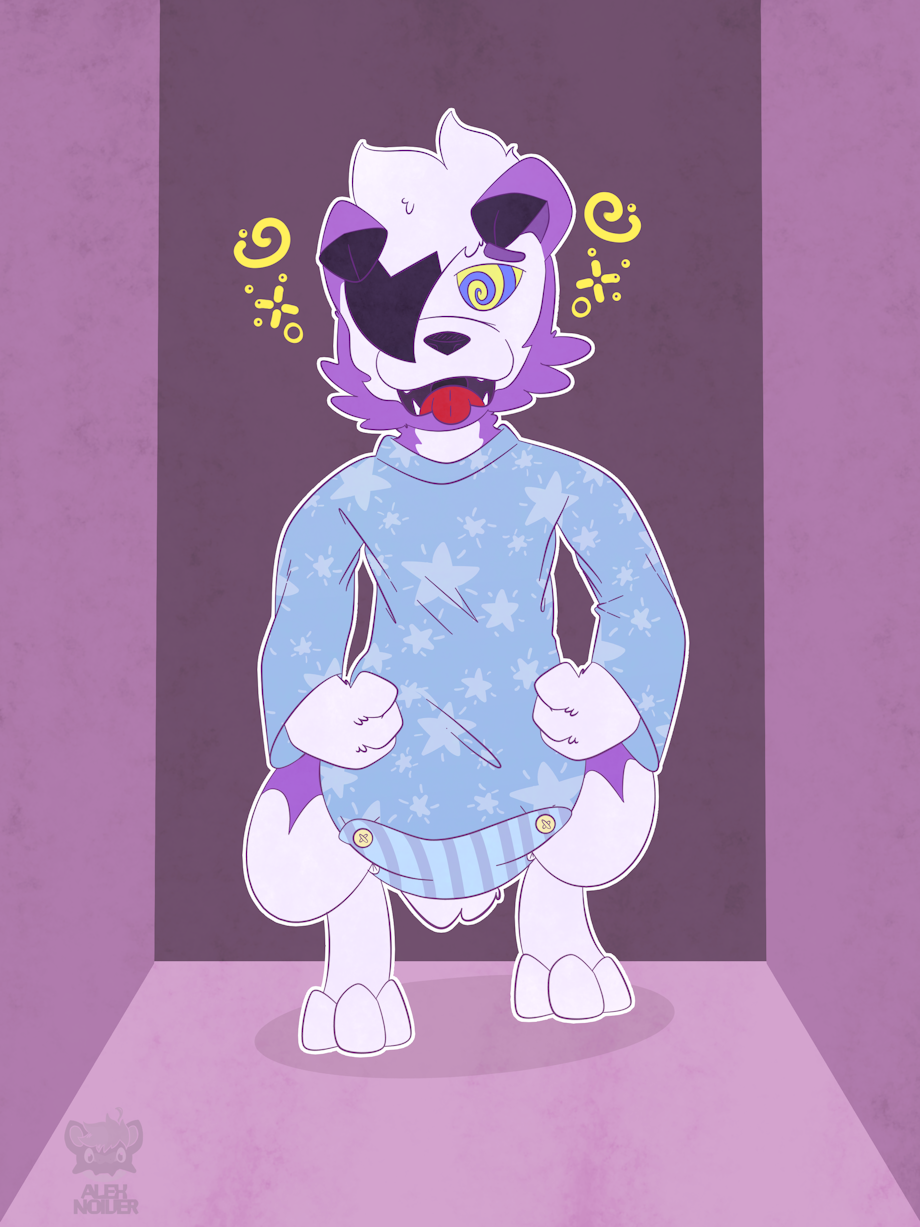a hypnotized lycanroc 🐺with a rockruff onesie and a star onesie⭐️✨