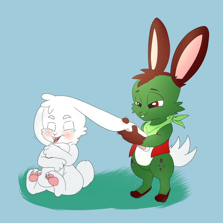 My bunny went from admiring his ears to getting him to have a little giggle.