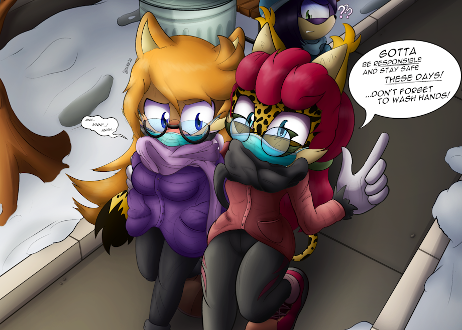 It was a nice Spring day. The sky's clear despite the fact it was snowing just yesterday, it's not too cold, but not too hot as well. Doesn't that seem like a nice time to go for a walk? Well, it certainly does, but during these times you gotta remember the necessary safety precautions! Not walking in huge groups, limiting social interactions, washing hands, wearing nice little masks. Zarah's more than happy to comply with all of the above as long as she and her friends stay safe :3 So here she is, walking around the town with Audrey, enjoying the outside. After all, a small walk won't hurt, will it?~