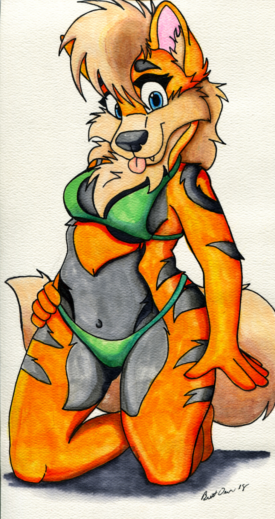 A lovely and sexy arcanine sweetie showing off her new green bikini.