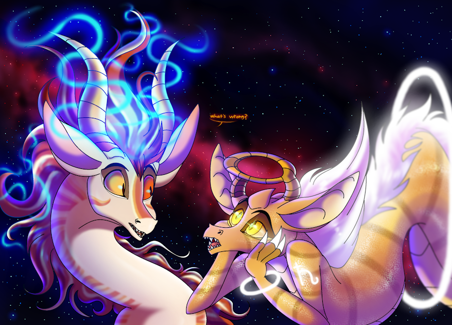 I feel like Jupiter and Saturn are my least drawn planet dragons >> Mostly because Jupiter's markings and Saturn's horns are legit tedious as shit to draw sometimes 8") jkdsf But I really love their designs and I wanted to give them more love ;w; But this one was actually fun to work on : D Anways, I been wanting to draw Jupiter with that super pretty aurora borealis after seeing this a while ago https://gyazo.com/0c6cb84cf14aa525c1e80819dfb4cfaf ITS SO PRETTY AAHH and ofc Saturn admires how they look and is a bit jelous :XD: (yes I know Saturn has auroras as well. this is kinda like..before his appeared or something?? Idk it fits his character and these aren't supposed to be 100% accurate lol)