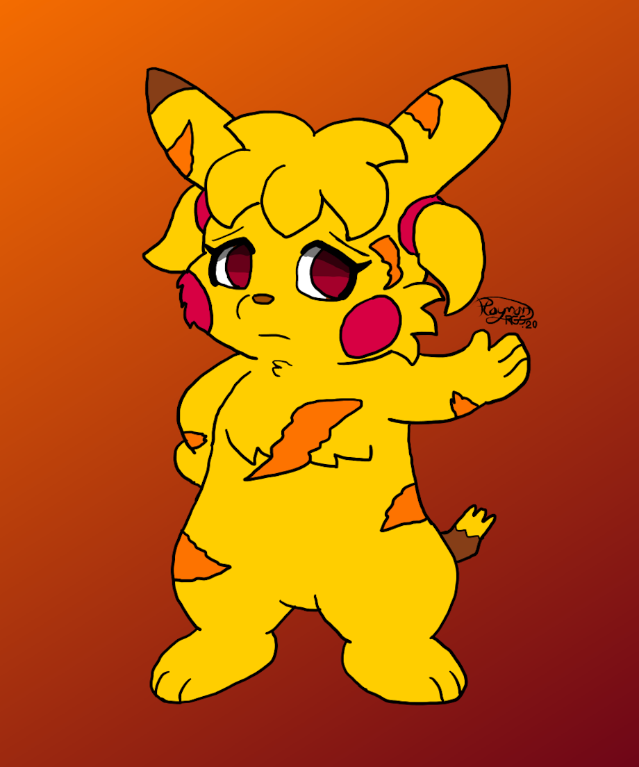 Past: Kary has a small but strong body, her color is something like a pikachu shiny, she has burns on her body and no tail.