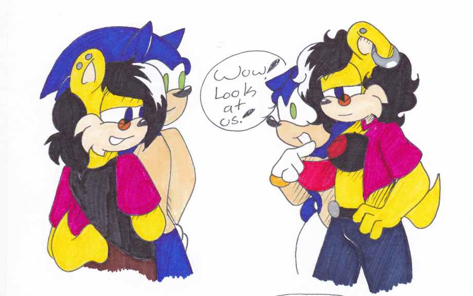 Since my gender bending of Tails and Cosmo I've been wanting to gender bend Ash and Sonic it took a bit but here they are, Ashlyn is abit taller because of her heels and has wavy hair like her "father", (Ash's mom has wavy hair as well) but she keeps it short so it looks curly. Sonnika and Ashlyn's relationship is about the same as Ash and Sonic's meaning they got together just about the same way.