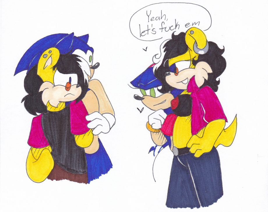 For some strange reason I like drawing Scourge messing around with Ashs I don't know why, and I'm really liking placing Scourge and Ashlyn together, I don't know why. But he better look out because Sonnika is a very protective of her GF, last time they fought Scourge lost his signature glasses.