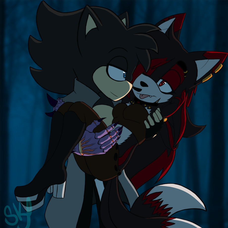 A piece of work I made for a ship a friend of mine and I have, with my kitsune hybrid Topaz "Flame" and his character Dan
