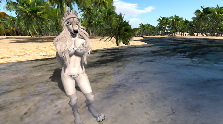 My lovely busty white wolfess enjoying a lovely beach in her bikini.