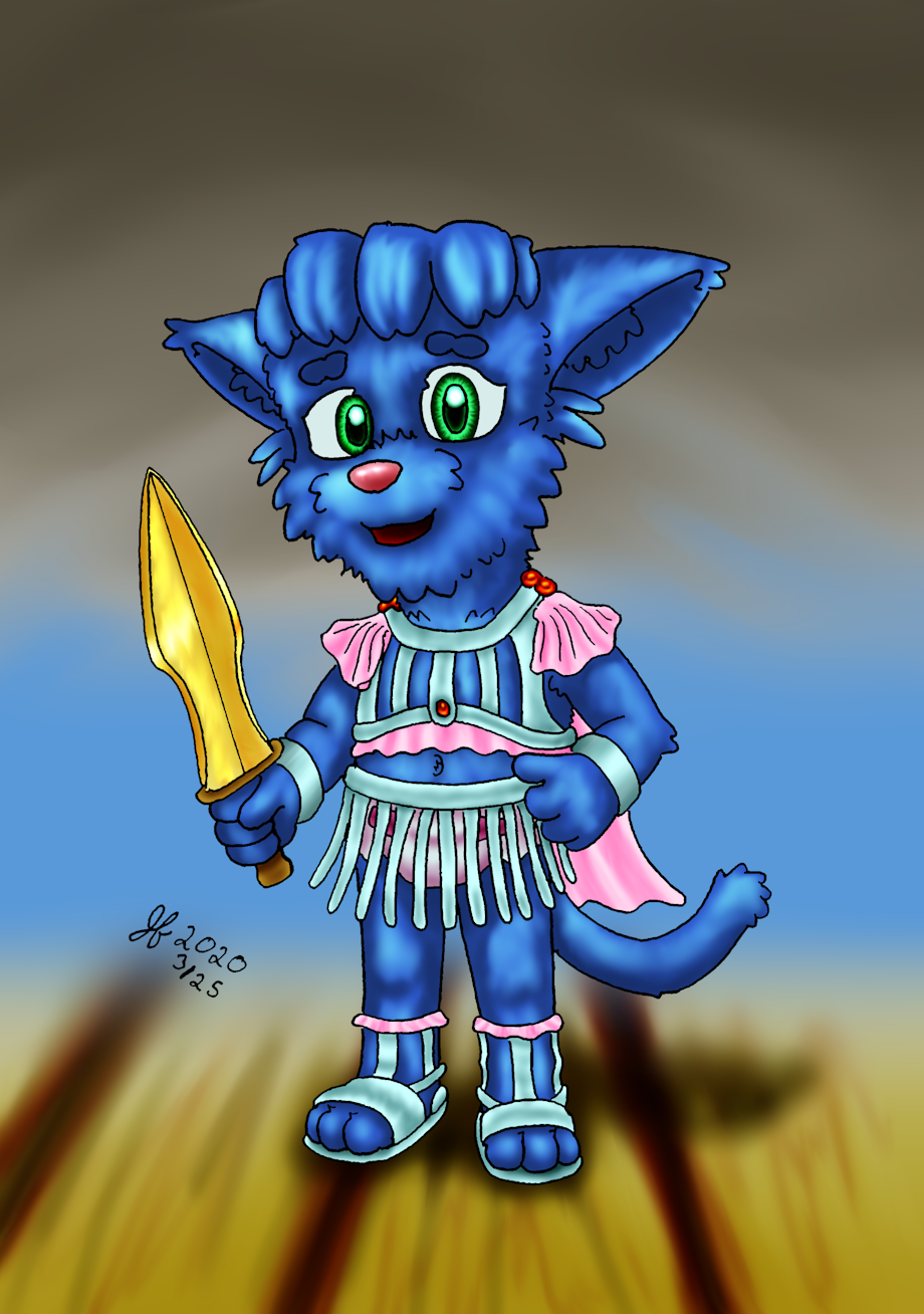 Precocious "Prince Innoxius", showing off his shiny Gladius and his flamboyantly practical clothing.
