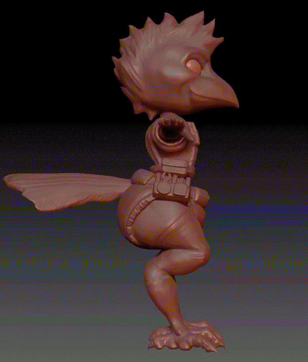 I completed the high-poly model for the Flute character, for Flo's base. I had a ton of fun modeling this handsome birb boy, and his big poofy diaper.