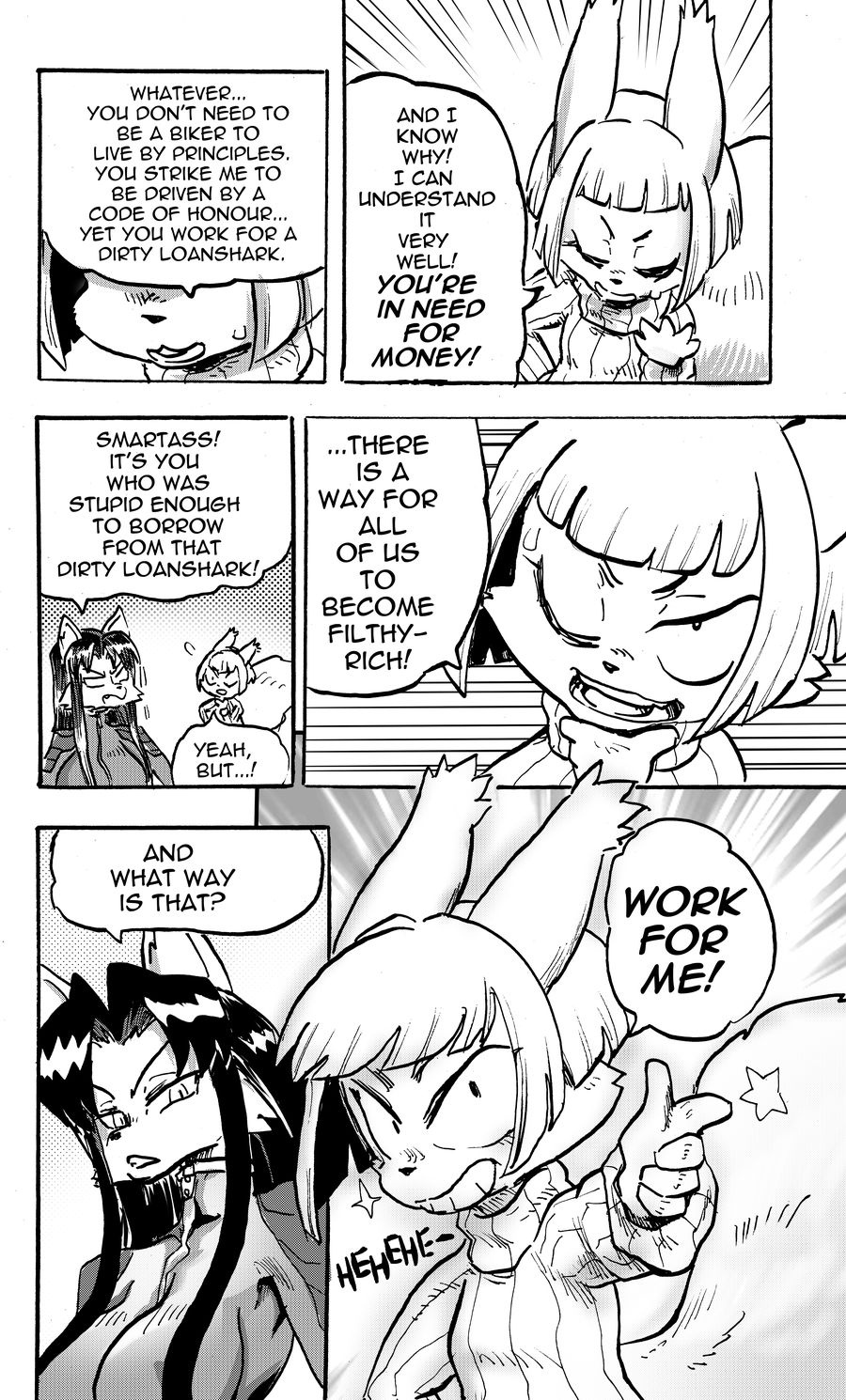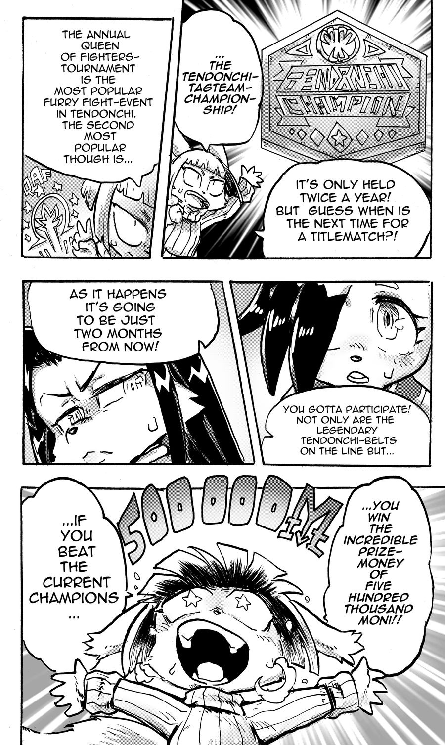 This chapter is extreme. I like how Kalita beats Muko with a single blow, pretty much breaking that stereotype of friendship and love allowing underdogs to defeat rivals who surpassed them in strength and skill. Kalita having a lightning punch shows she's probably a pro-level fighter as she's the only character so far besides Nyarai and her fire kicks to have elemental attacks, meaning there's some sort of skill gap to cross in order to get such level. I am curious about the Tendonchi championship, especially since Muko needs to complete three trials before she can fight in the tournament. Props for Cookie and Shun for training Bolouma and Skully, as the former built the base for the fighters they became and the latter turned them into champions. I feel bad for Kalita quitting her gang since it meant the world to her, and now she has to go against her principles to make a living. While her becoming a Combagal is bound to happen, I can see why she's resisting with her arguments. I'm dying to see how she gets convinced to join Cookie and Muko. Finally, that Snuggly commercial killed me, lol. Until next chapter.
