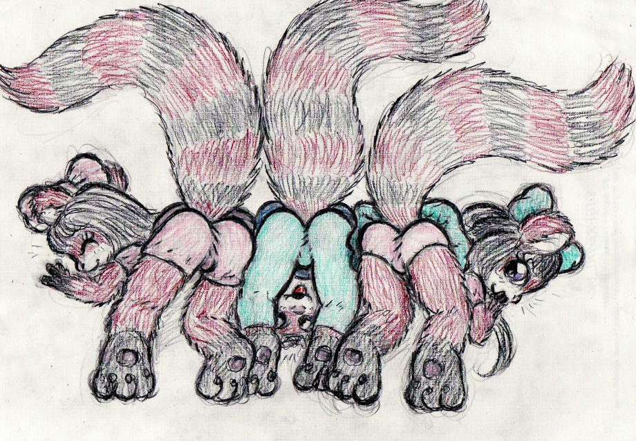 Three siblings, from left to right Pumi, Pori and Pini, being silly and... um... cheeky.