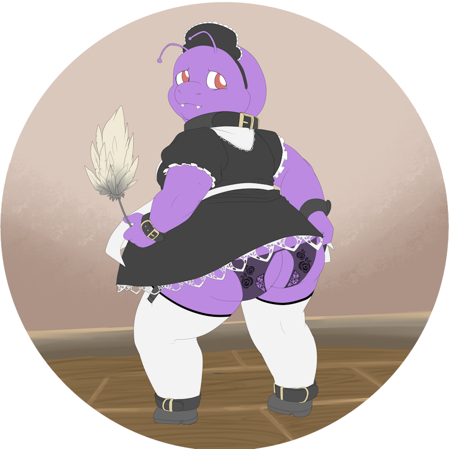Flat color stream commission from chibisaur of their super obese butterfree boy as a maid! Naughty thing, those panties aren't part of the uniform! uwu