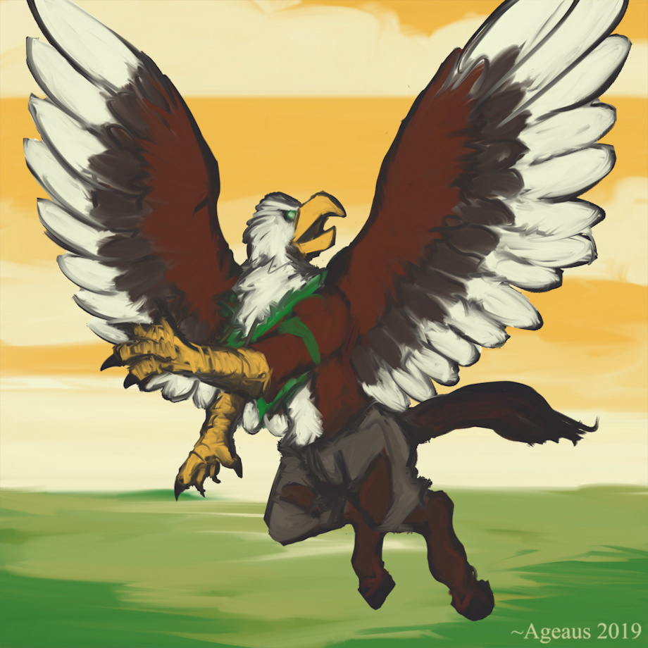 Pheagle as a freshly transformed hippogriff, already in mid-flight! Drawn by