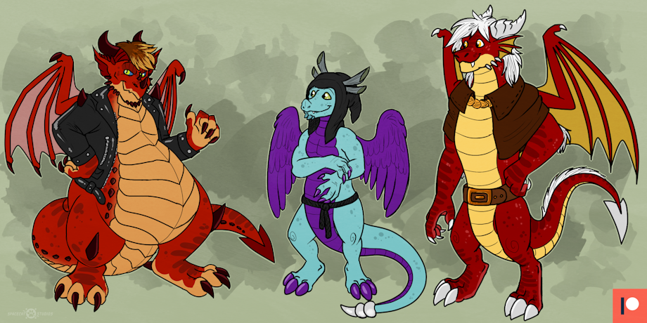 Three of us got our Spyro: Reignited "dragon dad" fursonas drawn by