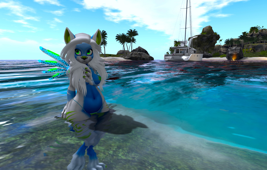 My cute and chubby kobold sweetie Myst enjoying some time on the beach posing in her favorite bikini.
