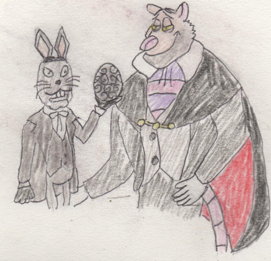 FullPricePod on Twitter picked two Vincent Price characters for me to mash up for fan art. Ratigan from the Great Mouse Detective and January Q Irontail from Here comes Peter Cottentail.