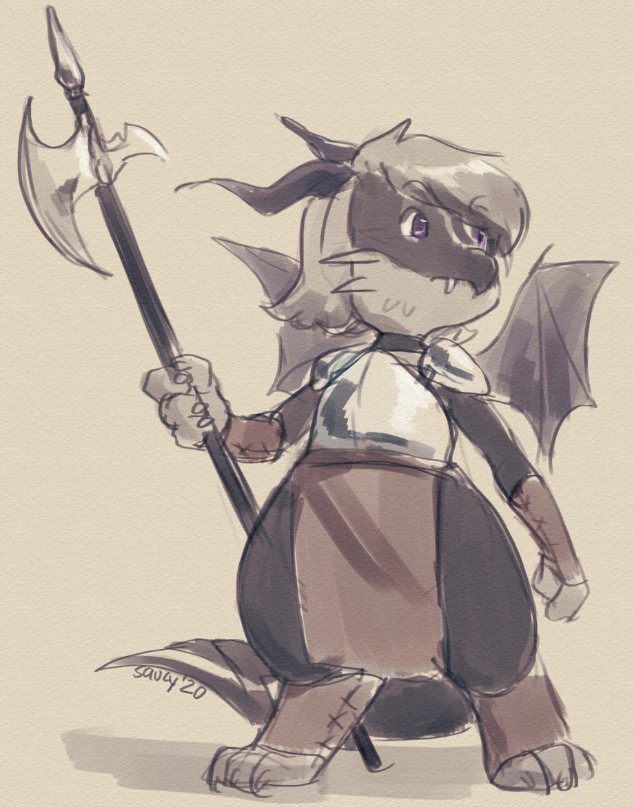 I decided i wanted a winged kobald version of scotty. So here he is. Tiny lil dragony dood... with a halberd... gotta have reach when yer smol.