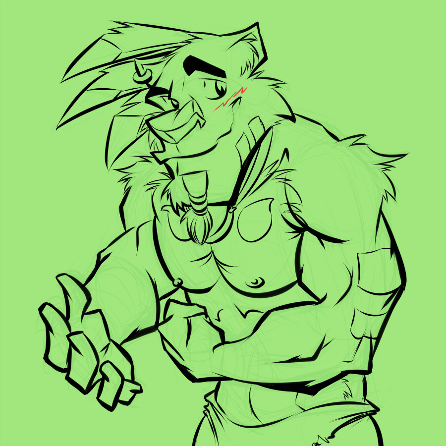 River Ankh sure is buff but often shy about it. Its unusual for a tribesmen not to be valiantly proud about their physic but its not his case. When complimented on his stature he quickly turns shy about it and attempts to trail away from the subject.
