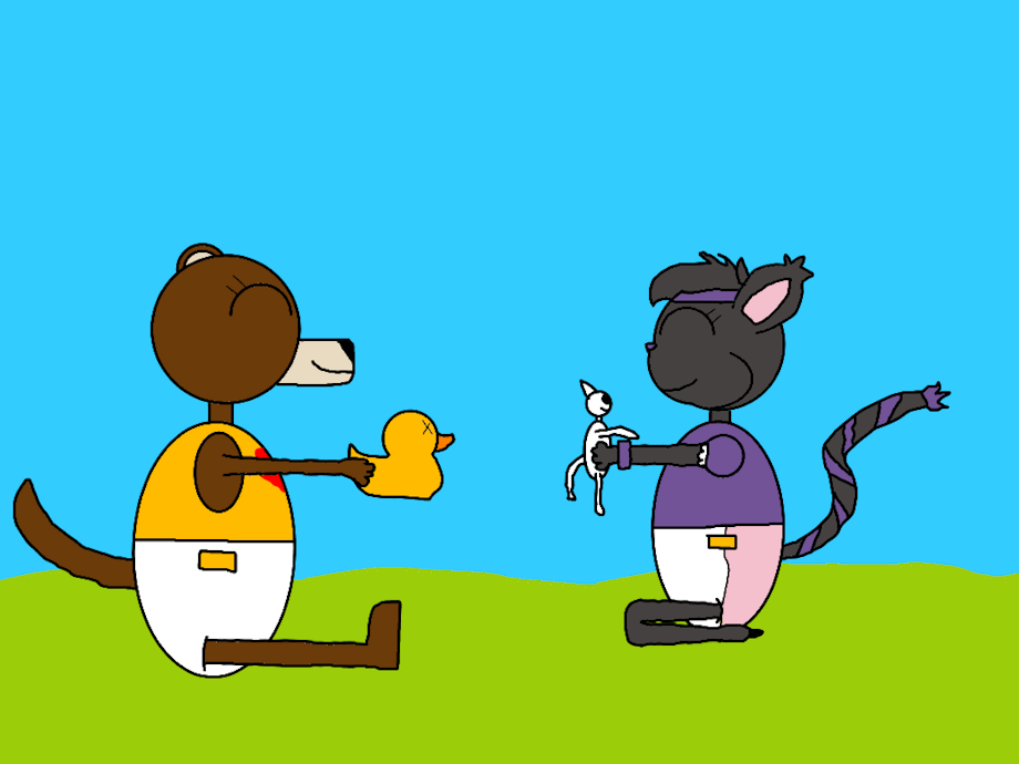 Elise is helping Starry the gatomon get more in touch with her baby side by playing with their favorite toys, a rubber duck for Elise and a plush gato for Starry. Seems like those two are gonna get along real fine.