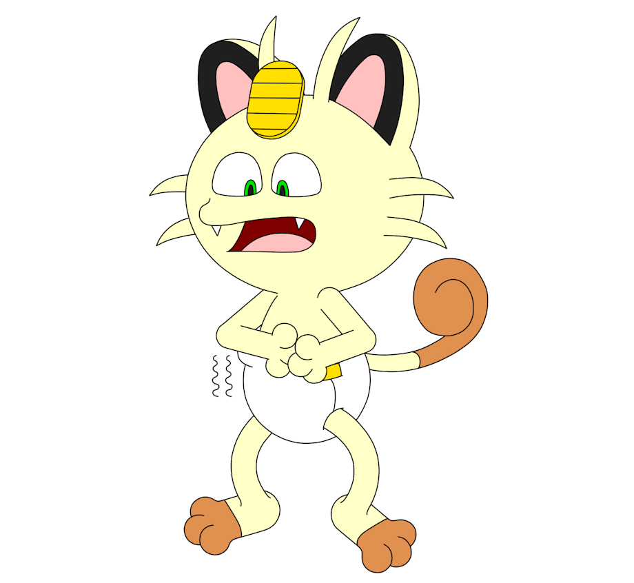 Pic 1 Here's Catty just standing here being good. ---------------- Pic 2 Uh-oh. What's this funny feeling he has? ---------------- Pic 3 Looks like he's about to make a stinky. ---------------- Pic 4 Whoa. I guess he really had to go. ---------------- Pic 5 Let's get that diaper of yours changed quickly, Catty.