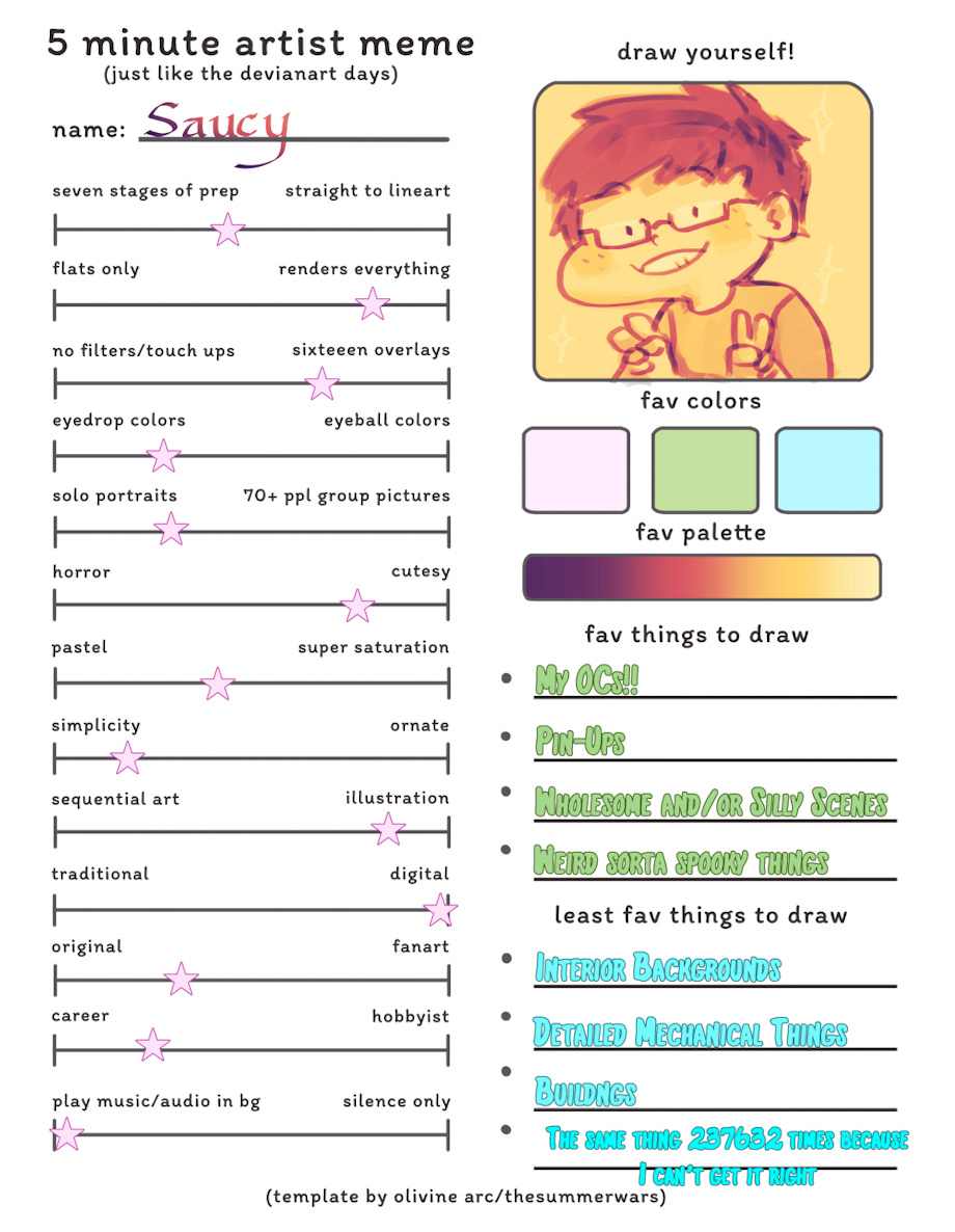 The "horror vs cutesy" one kinda messed with me bc I love drawing both but I guess I don't draw horror nearly as often so I did that