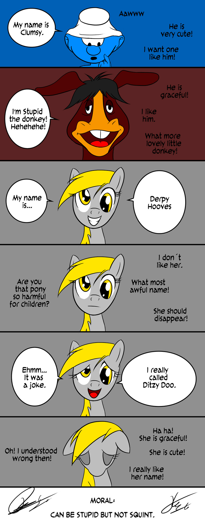 "What's different? Pinkie looks like always. see? She is even smiling!"