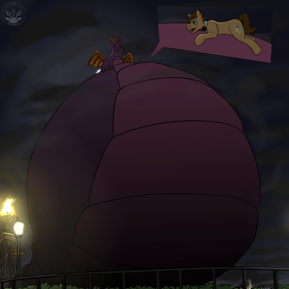 This is a birthday gift I made for bobby165324 (FA). His character Bobby is having a nice time lying on the enormous belly of Figment, who has gone to the middle of EPCOT's World Showcase lagoon and inflated himself to be huge since he knows what Bobby likes.