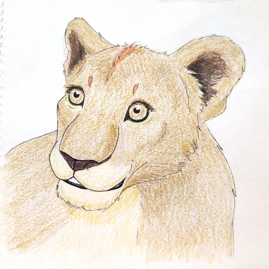 Random lion cub based on photo. I made detailed sketch and then colored it with Progresso crayons. Don't you think it's ears looks quite 3D-ish? :D
