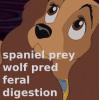 Lady became silent, resigned to her horrid fate in a wolf's stomach, although she did struggle and push weakly in the faint hope that it may make the predator drop her. It was almost amazing that the wolf could fit so much meat in her jaws, although that was of little consolation to the spaniel as she stared ahead, dazed and soaked with saliva while the sharp teeth jutted into her plump stomach.