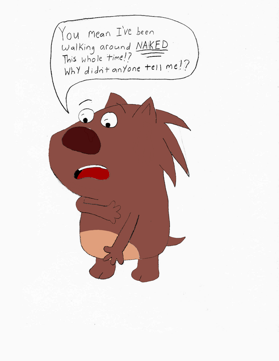It's ironic that she's the only main character that wears no clothes. So imagine if she had the sudden realization that she's technically naked.
