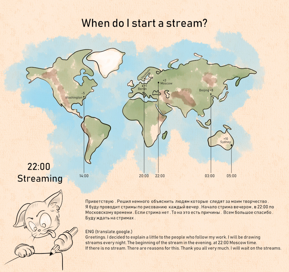streams every night. The beginning of the stream in the evening, at 22:00 Moscow time.