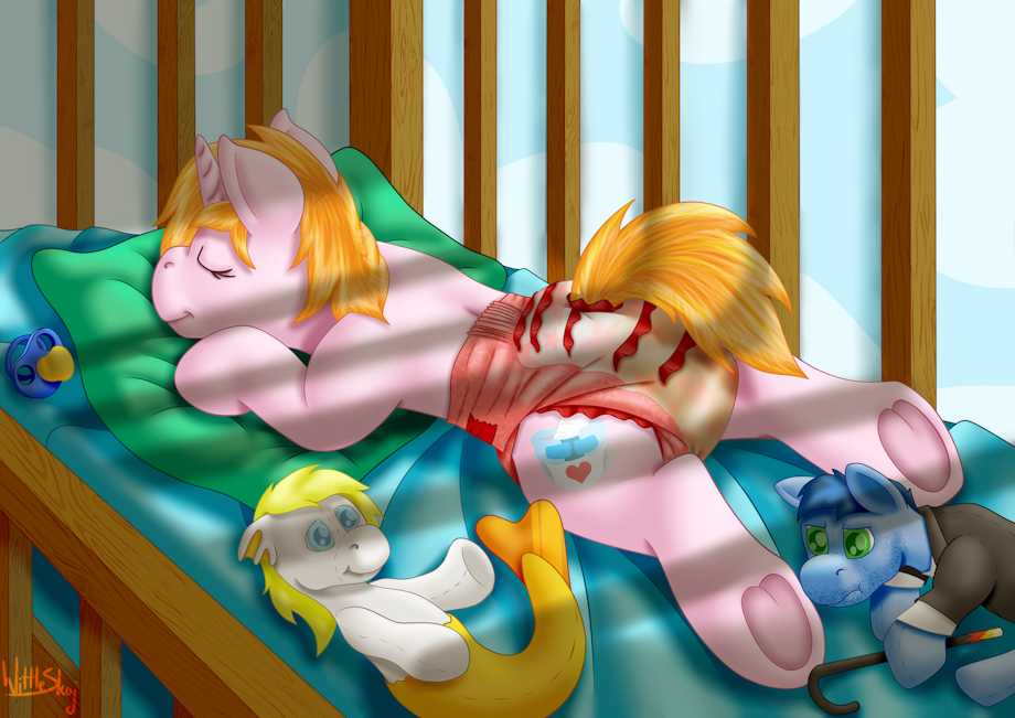 Commission for my friend Darcy featuring his OC, Starry Drop. A unicorn that likes to transform herself into a foal.