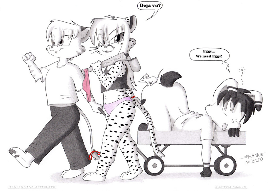 The chars from left to right: Tira, Vanilla, Gwen (on the butt) and