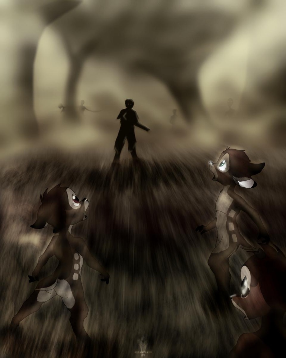 June 2009. Father and son, was the first picture I did about the Great Prince. I find a little complicate the design in anthro, not exactly his design, indeed is more easy than Bambi´s adult curiously, but I found complicate for make the conversion of feral to adult because I see RIDICULOUS the steroids on the deers, it works better in horses, but in deers... um oh, do not work with me.