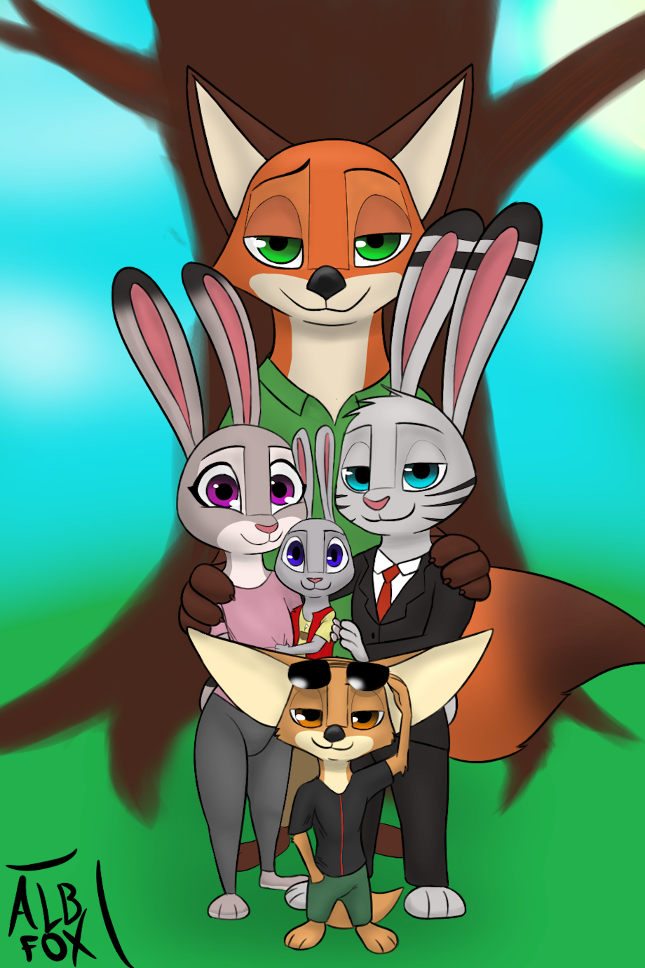 This is a commission for Darkshiner8. It's a cute pic with their son Joey and his uncles but... Judy is not thicc T-T my heart can't accept it