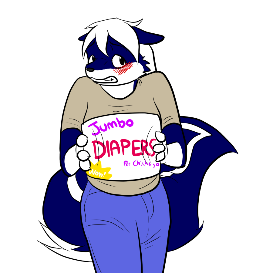 . Now the skunk has 'mysteriously' found herself utterly incapable of holding it in, and has resorted to diapers. Oh no?