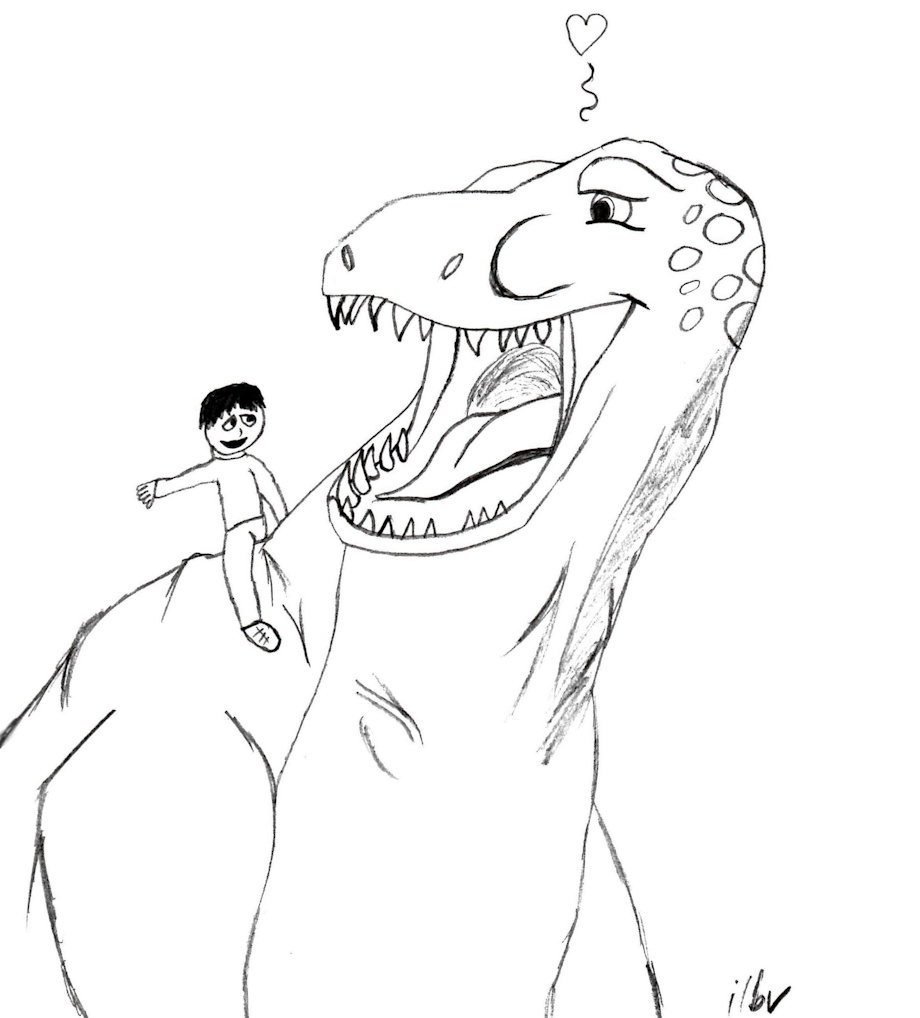 While all the other humans flee in terror from the Dinosaurs, Issac happens to know one well enough that he offers the human a ride up on his back, now they can go off and adventure the island together. Issac knows he might end up in the Trex’s stomach, but that’s part of the fun when you are buddies with a Dinosaur that can eat humans.
