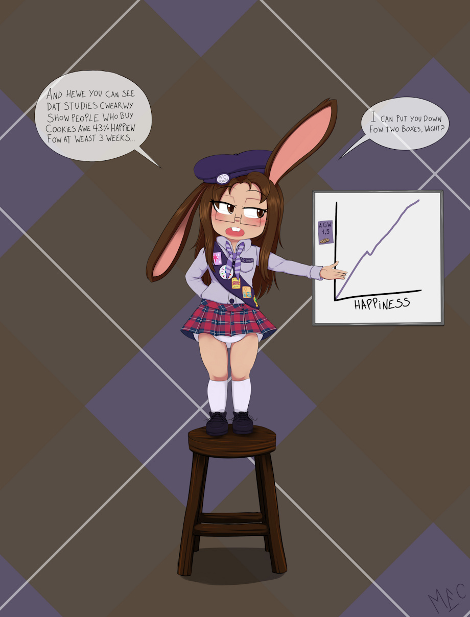 Commissioned by BunnehWyld who got herself Age Regressed all the way down into a very young but very efficient Girl Scout, yes, she may still be in diapers, but she knows her business better than anyone, can you fight her cold hard facts?
