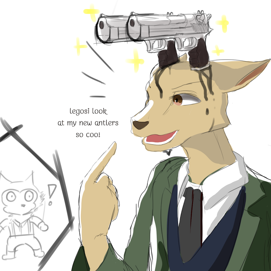 I don't know if anyone have already done this but I'm bored so here Louis senpai with desert eagle on his head...
