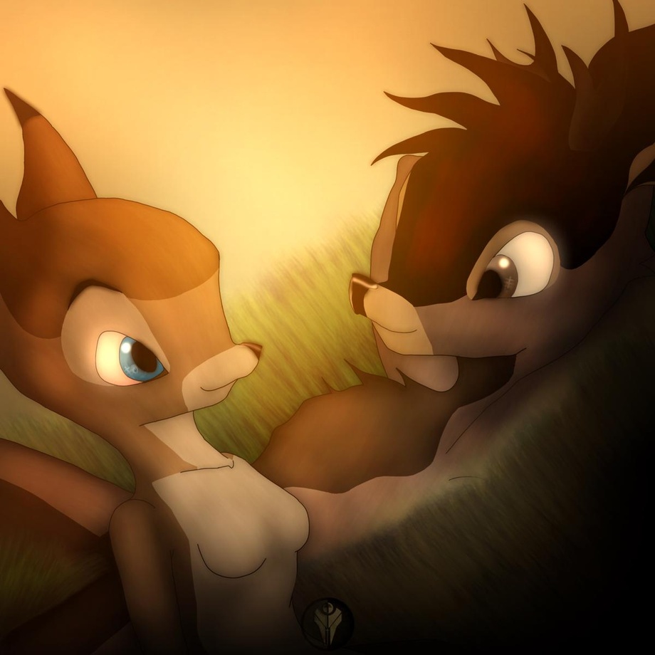 On this I retaked the spots on the back of Bambi and Falina... is one of the few works where appear togheter. No background, only a super nuke expl... ejem, an exagerated light effect behind the characters. x3