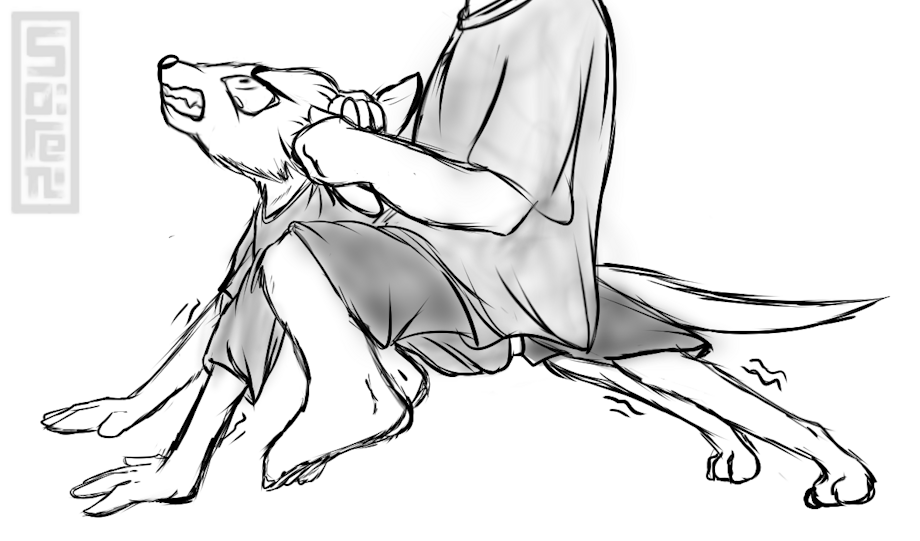 "Argh! Hgnn..." the fennec whined, trembling and staggering as the pang let him sink to his elbows.