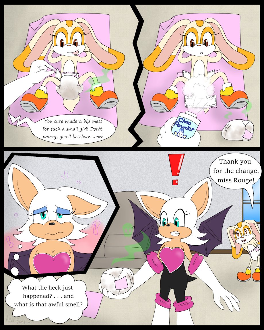 Seems the hypnosis wore off, but unfortunately with Rouge in a bit closer contact with Cream's used diaper than she'd ever want.
