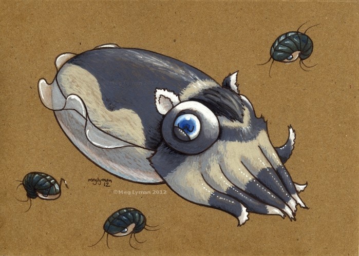 was doing cephalopod commissions! And as a bonus, she made little floaty isopod Larries. :D