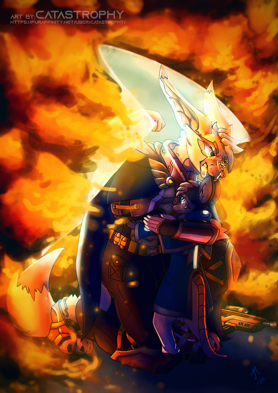 Marcus using his sheild ability to protect a child from an explosion. The ability takes it's toll.