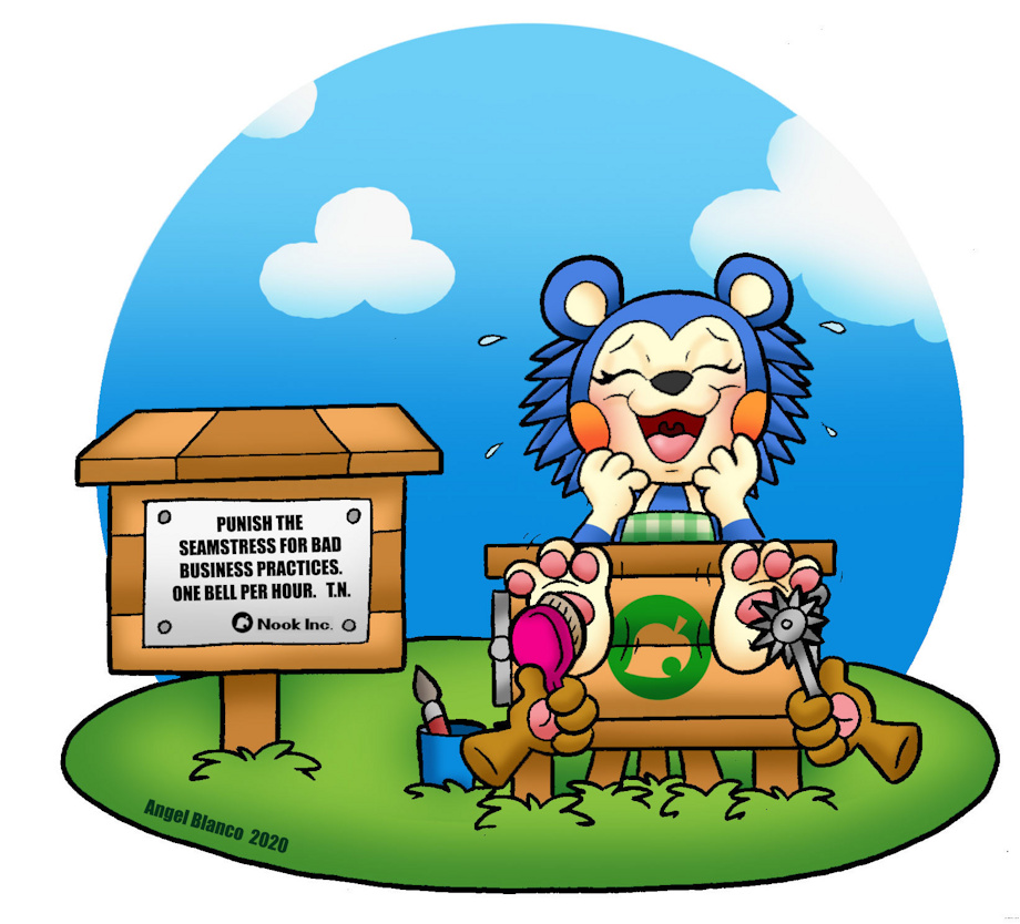 A very cute YCH for FurbasticFun :D Poor Mabel has kinda' let her seamstress jobs fall a lil to the wayside. And Tom Nook has noticed. As punishment, she's to be tickled in the island's local stocks until her debt of flimsy workmanship has been repaid to the island's inhabitants. Might take a while though ^^; hehe
