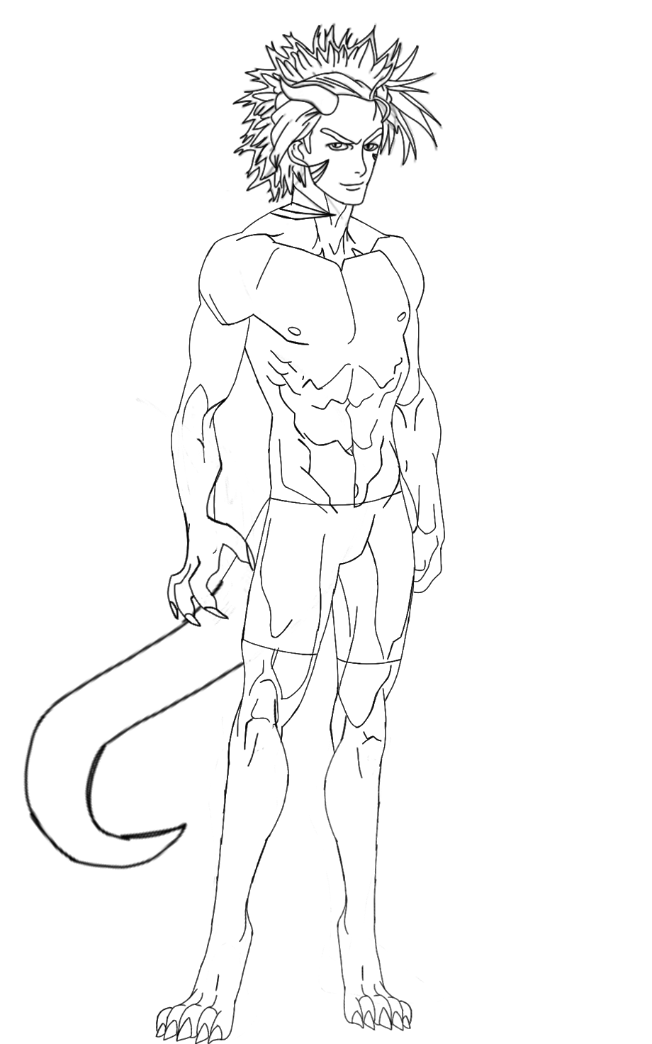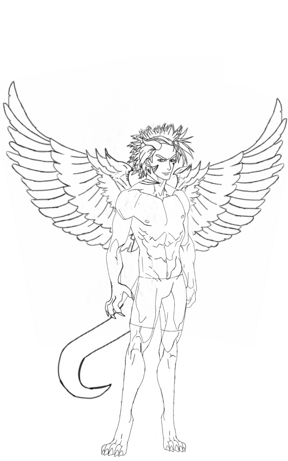 Dramond is a tall well toned young man, like his mother he has Dragon aspects horns, hand and leg claws with a tail, from his father he inherited a set wings.