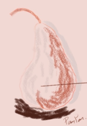 okay I have been practicing I have been reading and I have been taking lessons, this is my first still art of a pear without tracing this was done by studying a picture of a pair using colored pencils and chalks it was done in painters 11 by Corel
