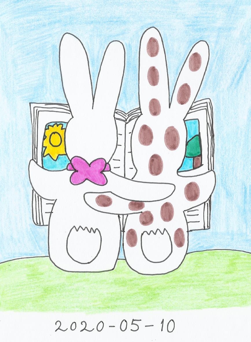 Another tribute art for "Spotty" book by Margret Rey and H.A Rey where Spotty and his sister Rosie reading a book together like in The End of the book.