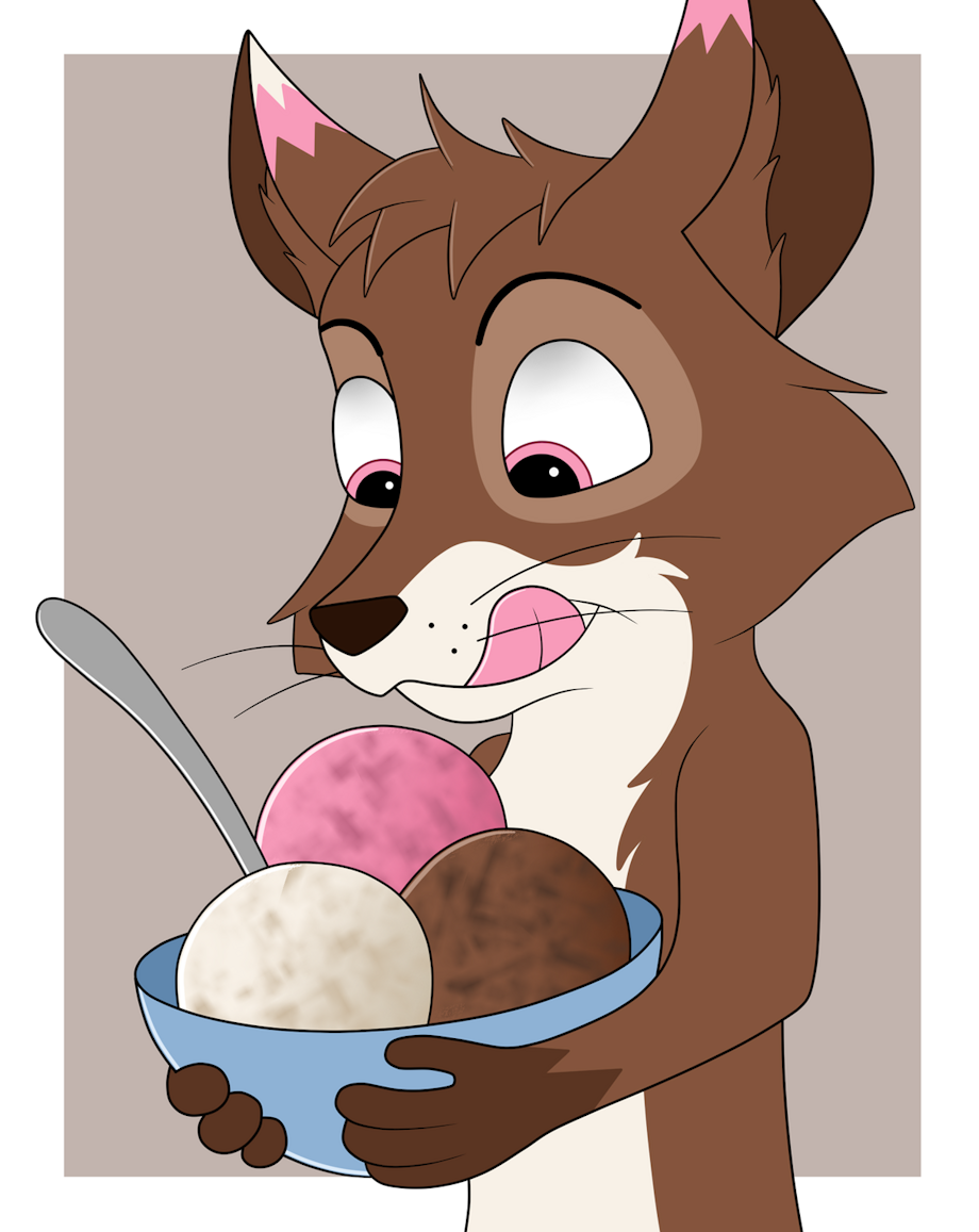 Yay foxy! He looks quite excited to taste that creamy treat :P